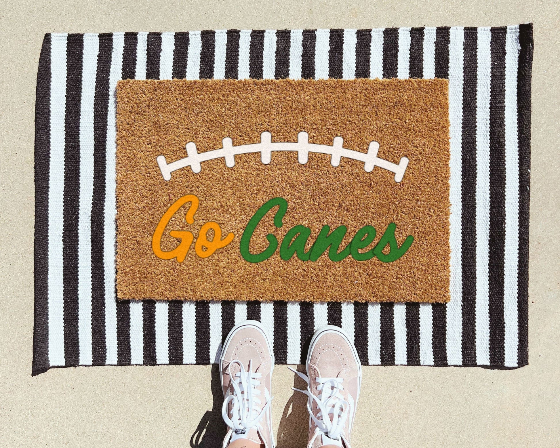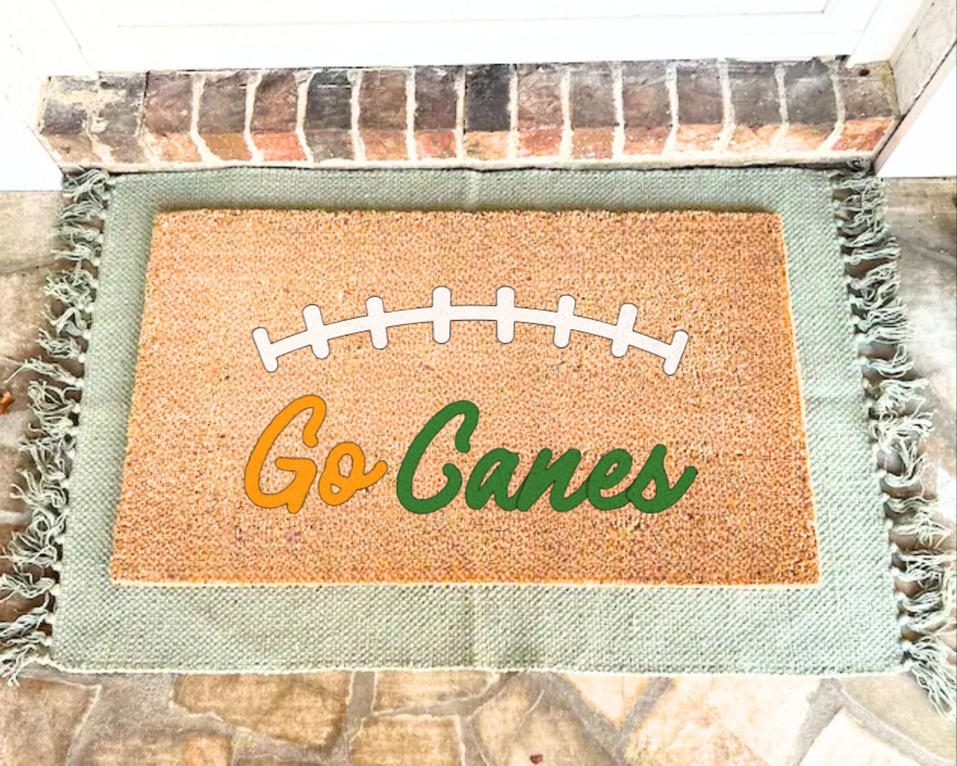 University of Miami Doormat – “Go Canes” Custom Football Welcome Mat